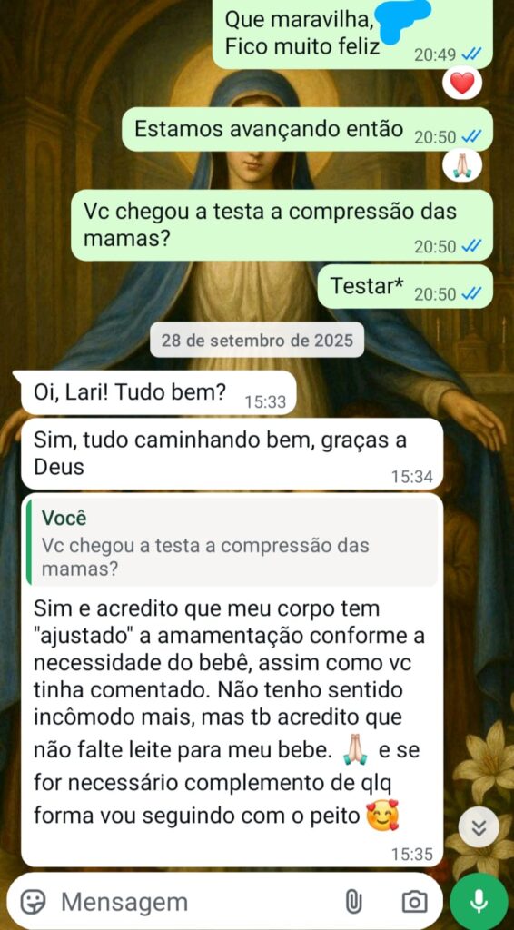 Além da experiência profissional, sou casada há 5 anos e mãe de 3 filhos, todos amamentados exclusivamente. Isso me trouxe não só conhecimento técnico, mas também a vivência real dos desafios e superações da amamentação.